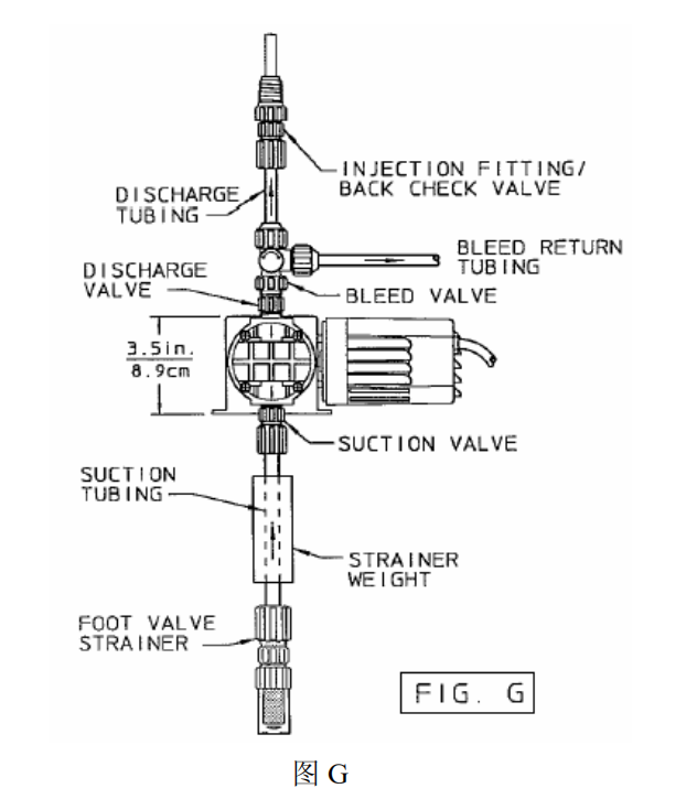 药剂注入到一个开放的容器中:由于每个进料器都带有一个弹簧止回阀。这使得泵头一边的吸管绝对密封,可阻止回流。标有“NSF”或ETL Sanitation(根据 NSF 标准-50 检查)的泵用在泳池水处理上。当选择适